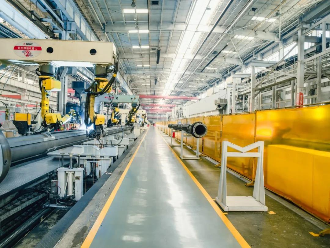 钻杆是桩机的核心工作部件,单节杆长度27米,重8.0吨,在以往的生产中,都采用“叉车”“行车”进行工序间的转运,效率低、安全隐患大,如何实现这一过程的自动化,是三一桩机灯塔工厂改造过程中最大的技术难点之一。