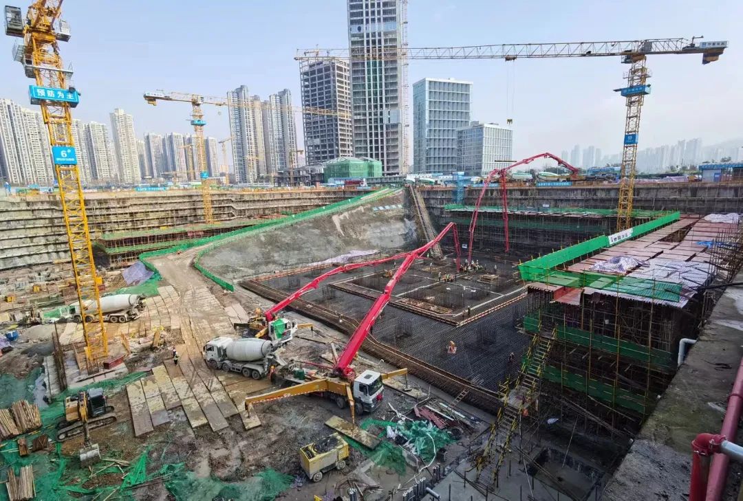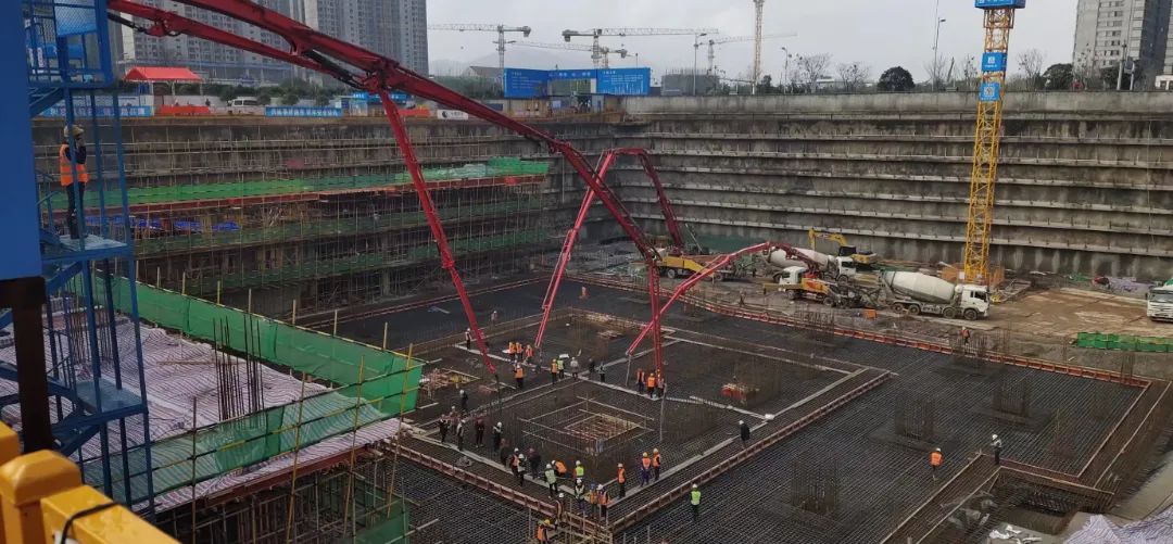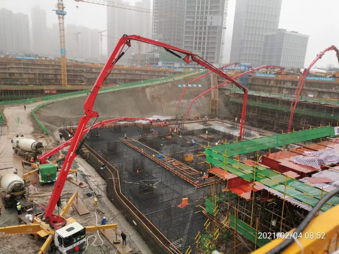 项目初期,长沙金茂大厦主楼大底板混凝土浇筑施工启动。历经 68 小时昼夜鏖战,由长沙方兴兴业置业有限公司开发建设、中建五局三公司中南分公司承建、长沙鼎宸机械设备租赁有限公司承接泵送服务的长沙金茂大厦主楼大底板混凝土浇筑顺利完成。5台三一C10系列泵车连夜奋战,实现了泵送“准点到达”“0”故障,混凝土浇筑的单次方量也创造了中国金茂华中区域的新纪录。