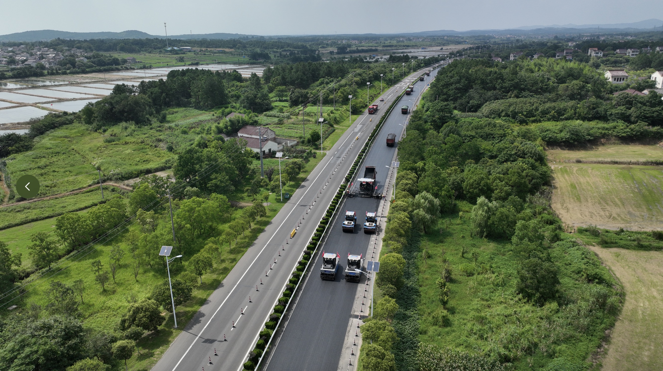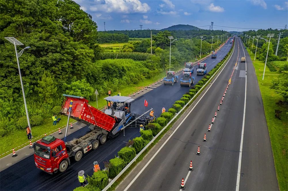 骄阳红似火,施工正当时。三一“黑科技”无人摊压机群出征南京,助力南京市普通国省道养护大中修工程S246宁郎线溧水段。