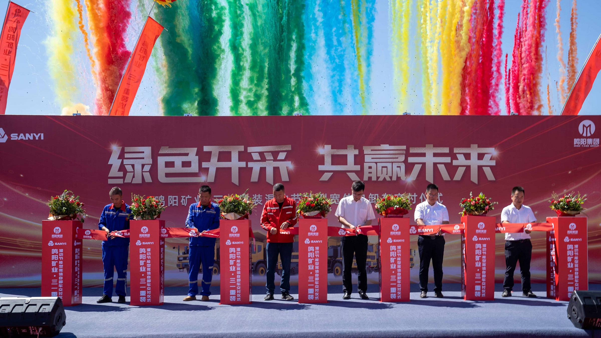 12:18分,伴随着剪彩结束,五彩烟雾腾空而起,一把金钥匙也交到了客户手中。未来,期待三一重装和鸣阳矿业的合作能够更进一步、实现互利共赢。