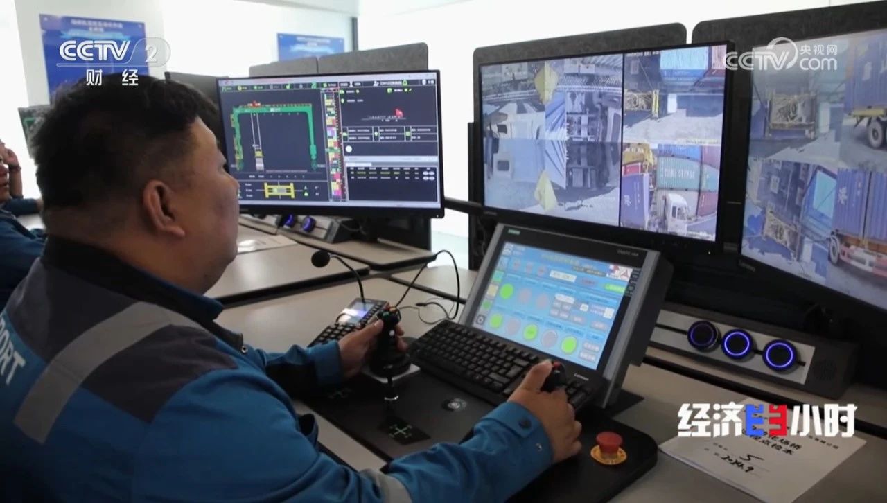 介入率低意味着从原先的一个人操作一台场桥,到现在一个人最多可以同时管理六台场桥。在桥上待了十几年的张良皓也成为了码头远控室里的一员,曾经要弯腰曲背十几个小时的工作,现在也可以轻松地坐在电脑前完成。