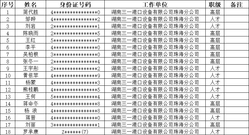 为增加员工归属感,我司开发位于珠海市金湾区平沙镇铭恩路31号【三一蓝海花园项目】用于引进行业人才,为保障房住不炒的居住用途及员工购房资格合规性,根据我司制定的《关于三一蓝海花园购房资格管理办法》,现对购房名单做如下公示: