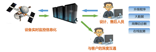 三一客户云:施工管理,增值服务,商场及社区,线上服务; 泵诵云平台:大数据监控整车性能,智能评估提醒维护,故障自诊断,泵车健康体检月报表。